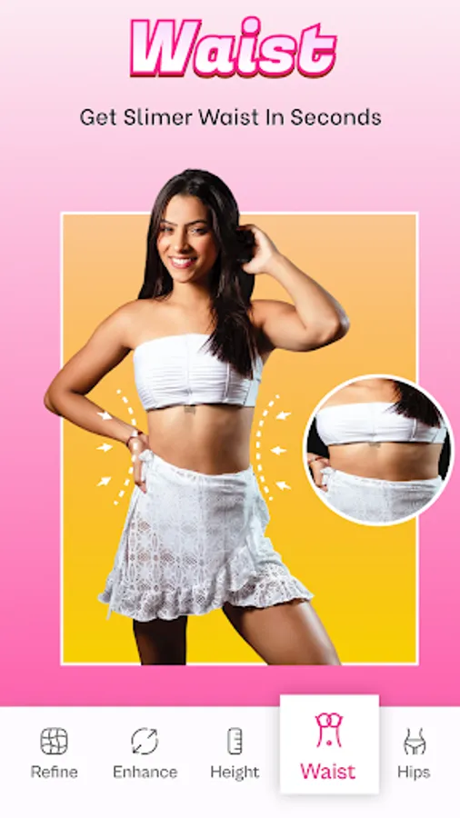 💚 Tune a flat belly with a waist editor. No worry about the wrong angle of the camera.