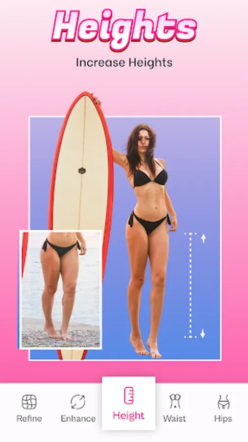 🥰 Body Editor - Face Slim offers a comprehensive set of editing tools specifically designed to help you edit body to your liking. Whether you want to slim areas like arms, legs, or belly, accentuate your curves body, or create a firmer look, the Body Editor has you covered. With just a few simple adjustments, you can achieve a beautiful body like famous models.