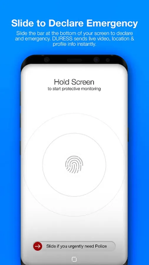 - With Duress, declaring an emergency is simple, and very quick. Either swipe the bottom of your phone, hold your phone and release, or remove your earphones. If you accidentally request police, simply enter your PIN to cancel.