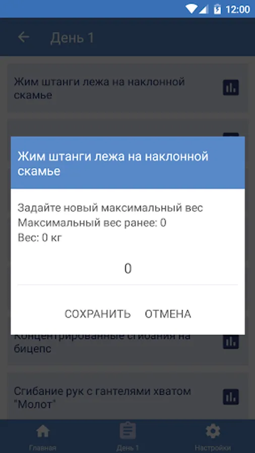 - Ability to save your weight progress for a specific exercise.