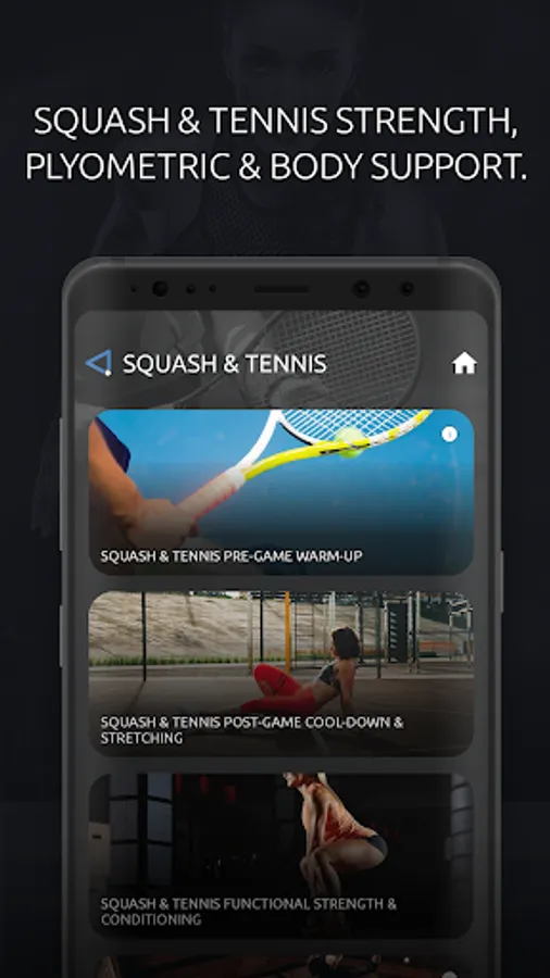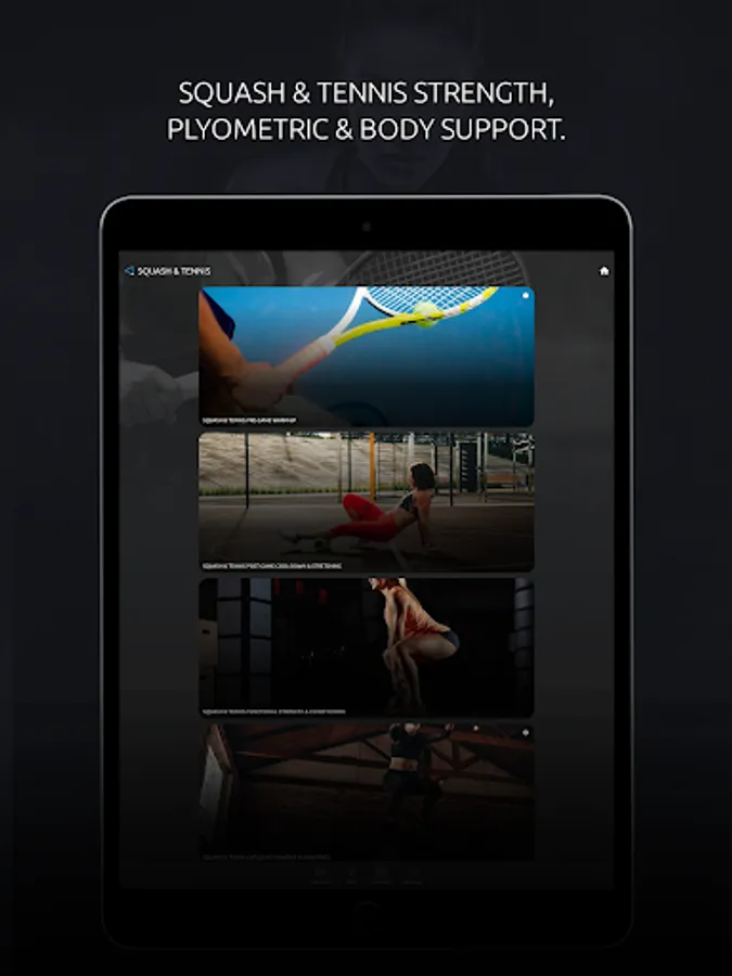 Plyometric and Functional Strength workouts, Core Stabilisation trainings, Warm Up, Cool Down and Stretching routines will help you make your training more effective and improve your results. Use knowledge and experience of Tennis / Squash trainers and physiotherapists and train like a pro.