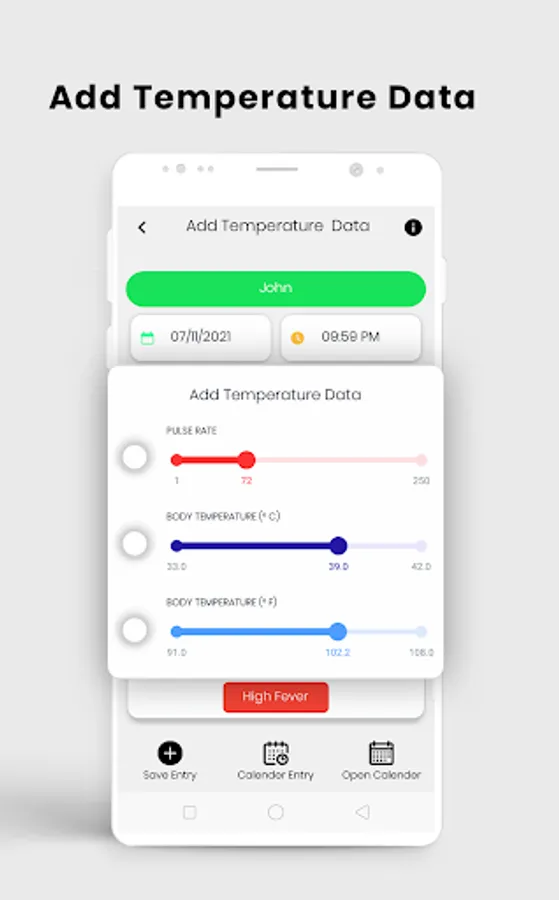 Enter Body Temperature details manually like Celsius, Pulse & save it with Date & time to track your Body Temperature.