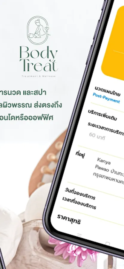 Body Treat, massage service and spa with skin care delivered directly to your home condo or office Take care of every step by expert therapists. cut travel problems You can relax at any time. Just click to reserve and choose to receive services from Body Treat - Home Delivery Massage & Treatment. You can choose the service time as you wish. The quality of service is comparable to a premium spa. Ready to deliver a superior experience of relaxation to you.
