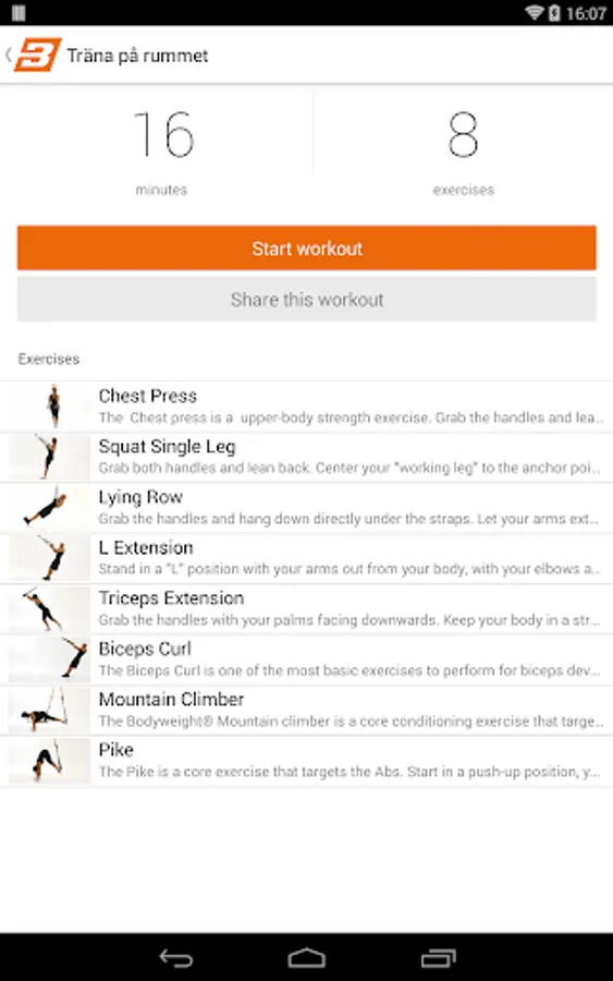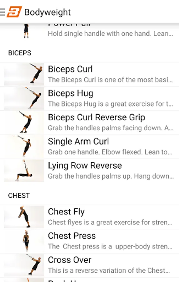 With the Bodyweight® mobile app, you can create your own workout routine. All training exercises can be viewed in a video and image format. You simply choose which exercises or muscle groups you want to train, set the number of minutes you want your workout routine to be, and then you just follow the instructions.