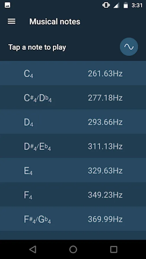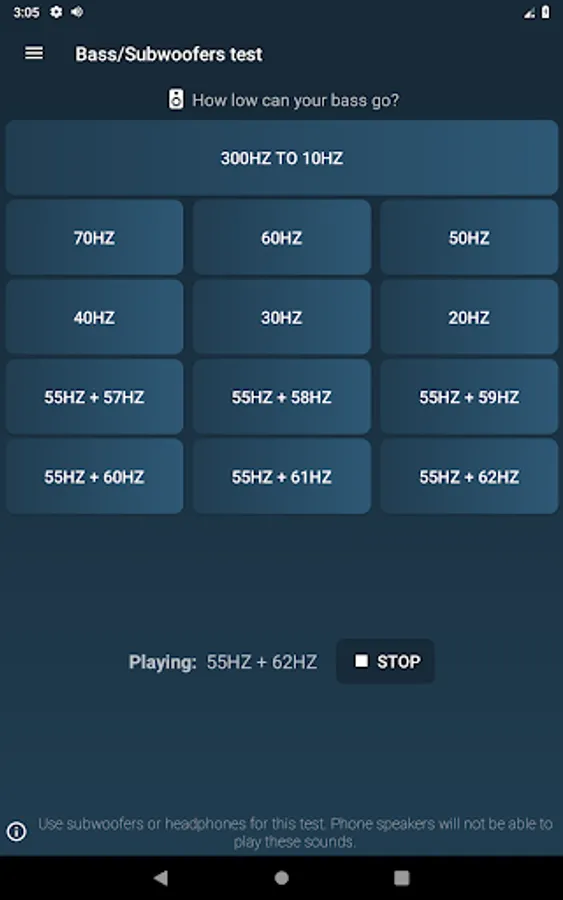 • Keep in mind that the generated tones can be very annoying and irritating for your surroundings. Always use this application responsibly. Also, keep the audio volume reasonably low to avoid damaging your hearing or your audio devices. If you rise the volume to better hear very low frequencies, don't forget to lower the volume afterwards before playing higher frequencies: the perceived volume of a tone depends on its frequency.