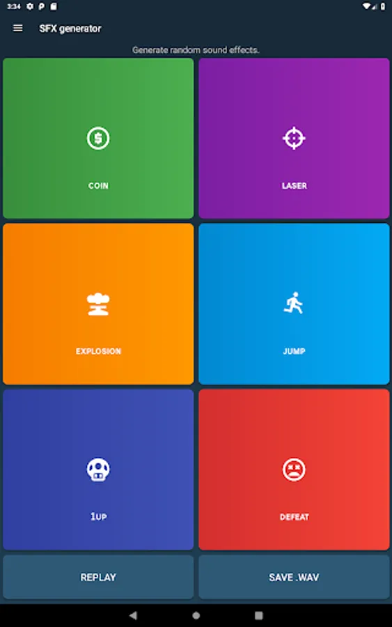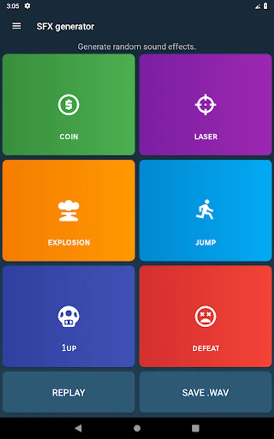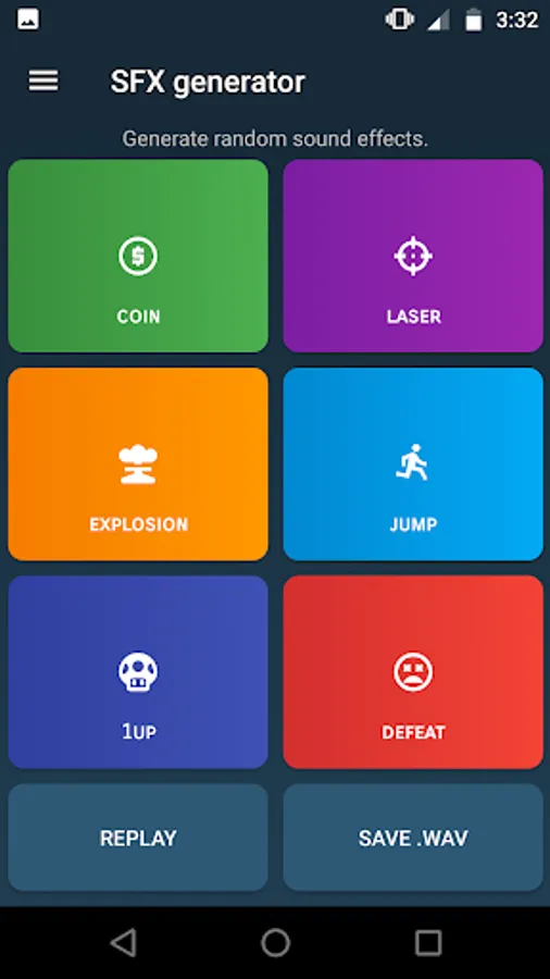 • Play and export randomly generated sound effects. Export requires Android 6.0+.