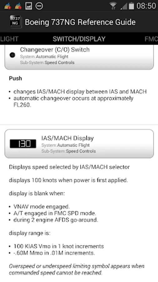 Reference guide for the Boeing 737 NG aircraft that details all switches, lights, systems, FMC pages and alerts.