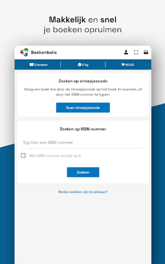 With the Boekenbalie app you can quickly earn money by selling your second-hand books. Everyone can use the app, from student to entrepreneur and you can scan from the comfort of your chair. Download the free app and earn money fast with your old books!
