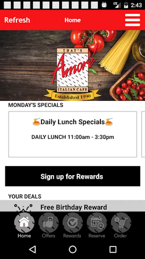 Use our app to order, see specials and events, get rewards and special VIP deals.