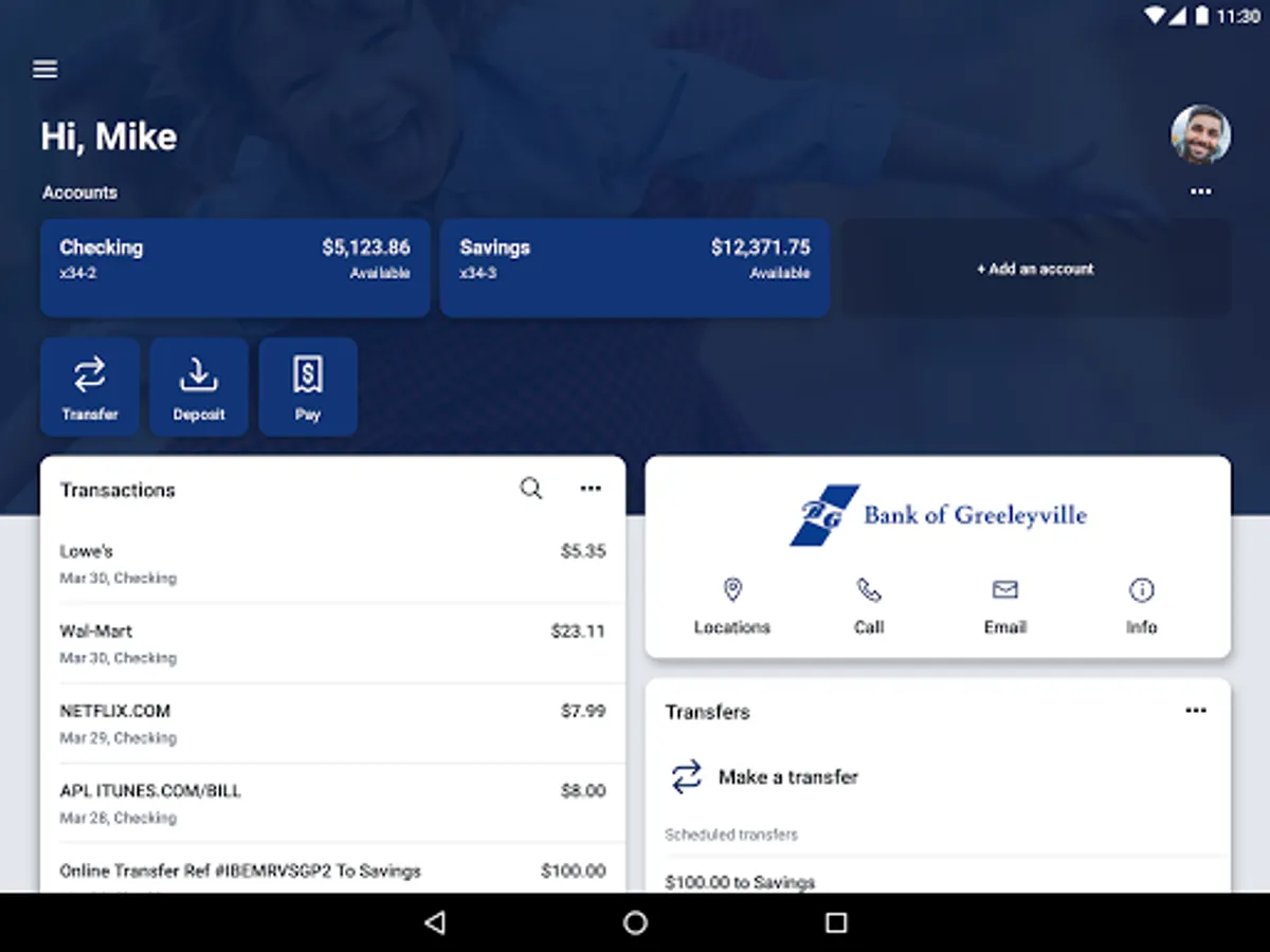 To use the Bank of Greeleyville App, you must be enrolled as an Bank of Greeleyville Internet Banking user. If you currently use our Internet Banking, simply download the app, launch it, and login with the same Internet Banking credentials. After you successfully login to the app, your accounts and transactions will begin updating.