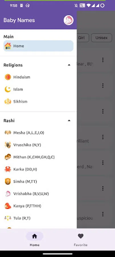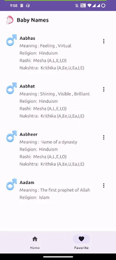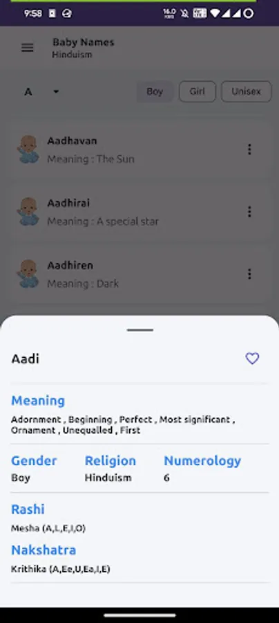 Search by name, meaning, or gender.