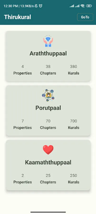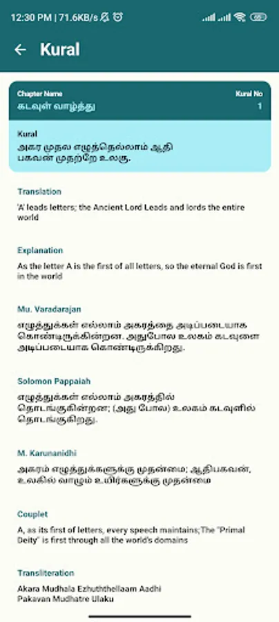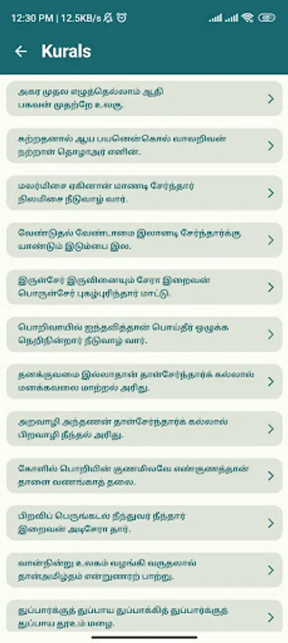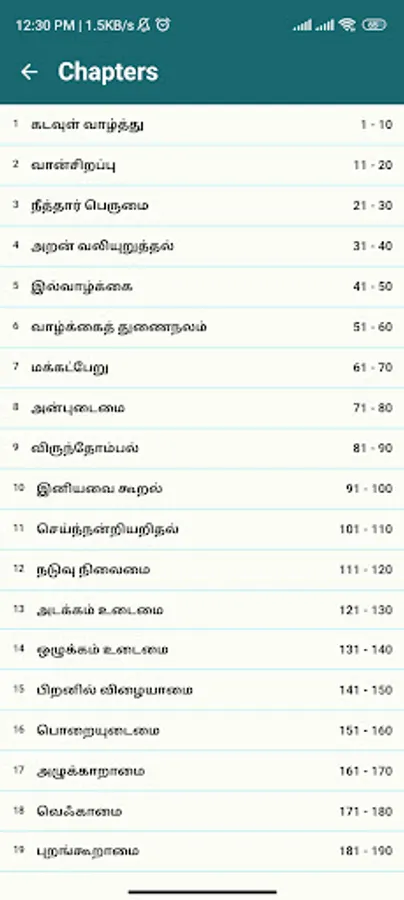 Chapter Organization: Thirukkural is divided into chapters based on themes. Android apps organize the couplets thematically, aiding users in exploring specific topics of interest.