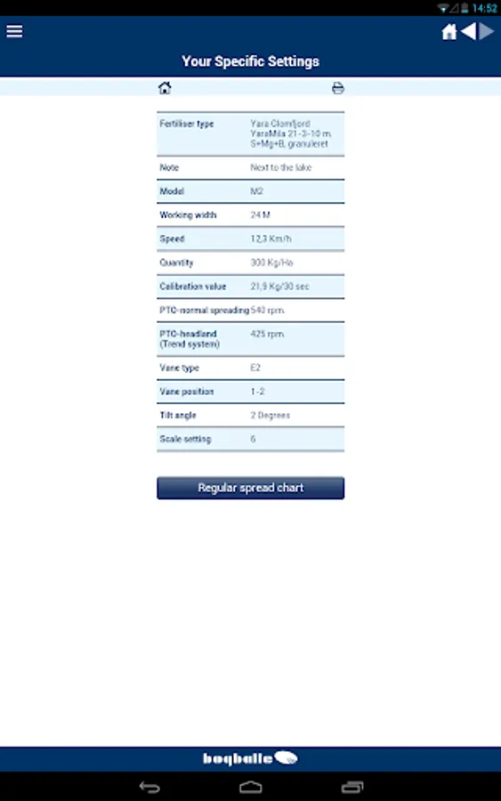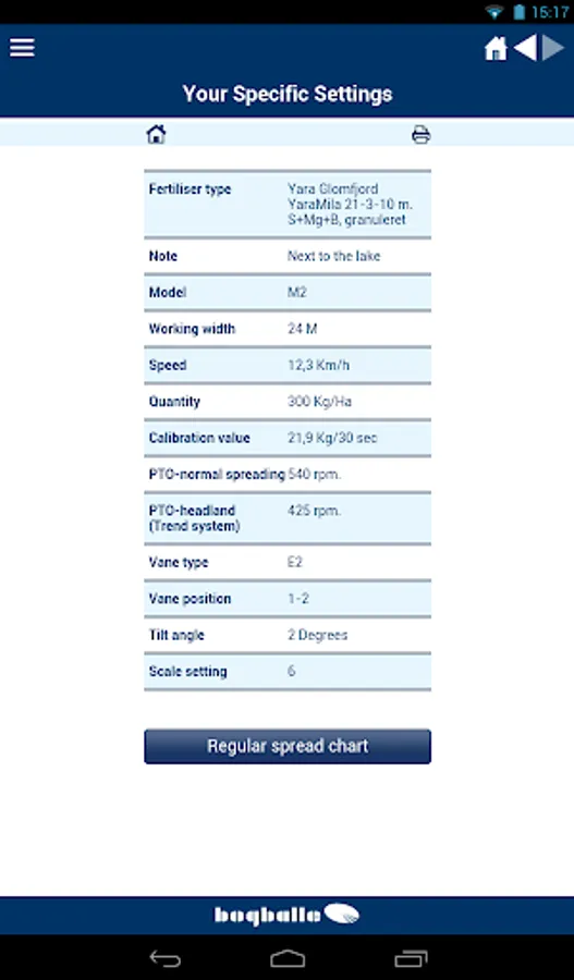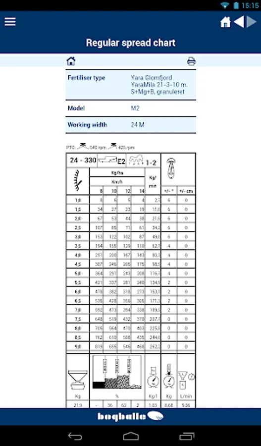 The BOGBALLE Spread Charts app will give you quick access to our online database with thousands of available spread charts for your BOGBALLE fertiliser spreader.