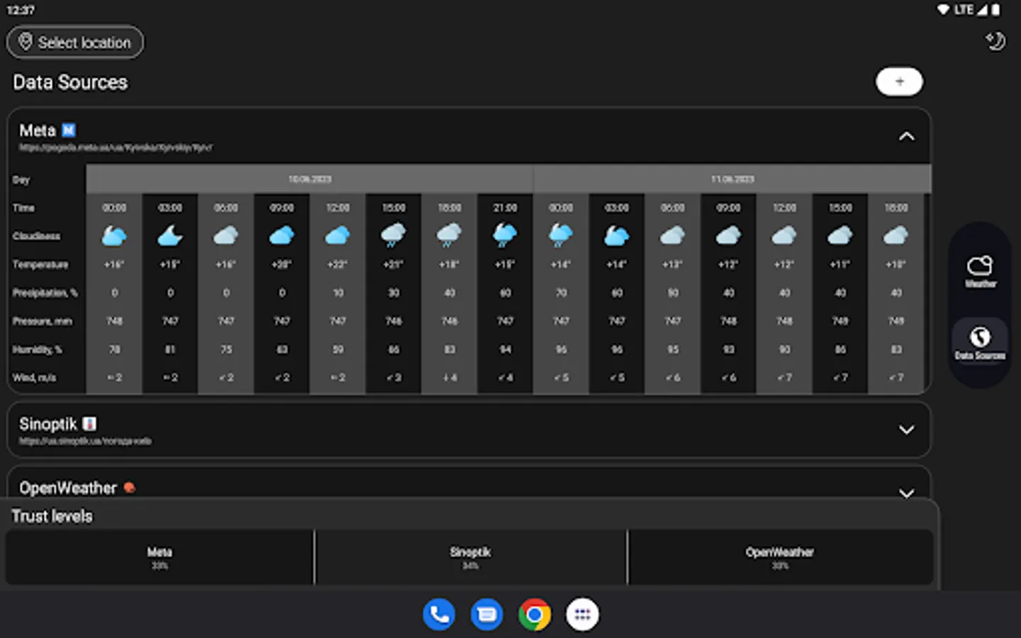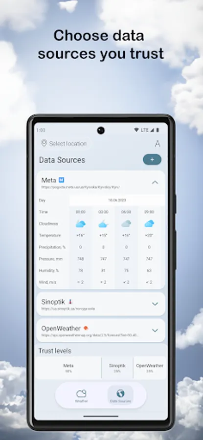 For each source, a trust level is set in percentage, this level is taken into account during the formation of the averaged overall forecast.
