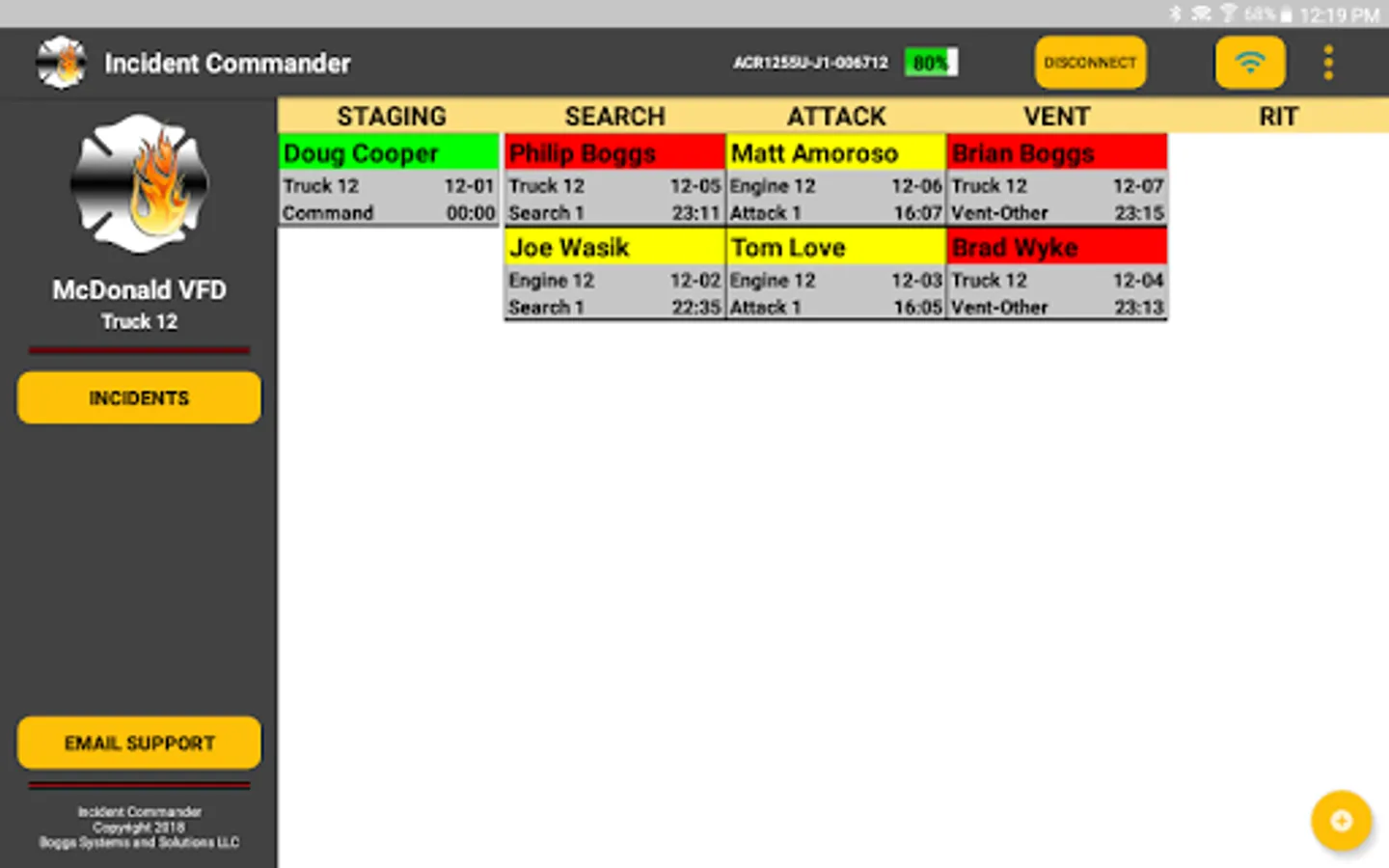 Incident Commander is an emergency response command suite for managing people and situations with efficiency and transparency. In the hands of an incident command officer or designated personnel, this system offers a real-time view of where firefighters are at any given time. Other tablets nearby can share the information with your device - all without cellular service (only WiFi Direct capabilities required)! Any on-scene interested parties can get the information they want at the tap of a button. When seconds matter most, trust Incident Commander.