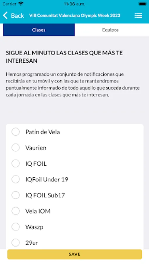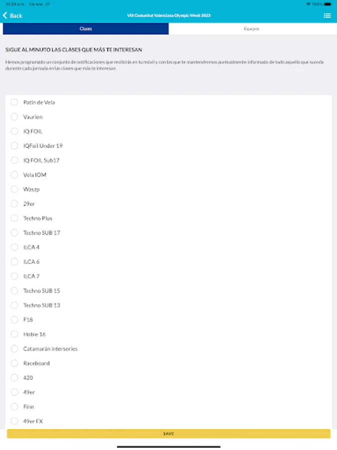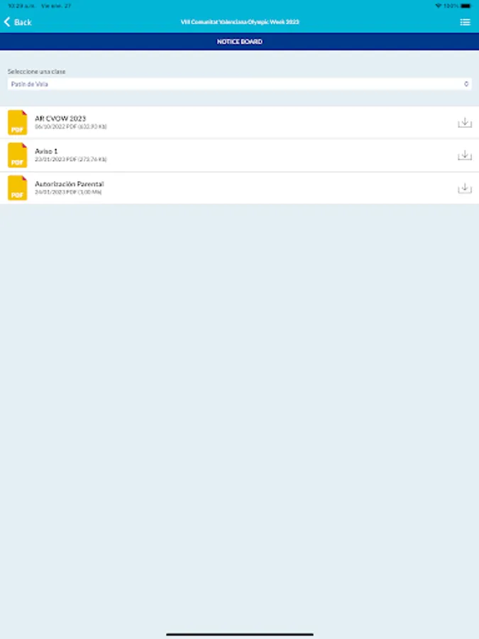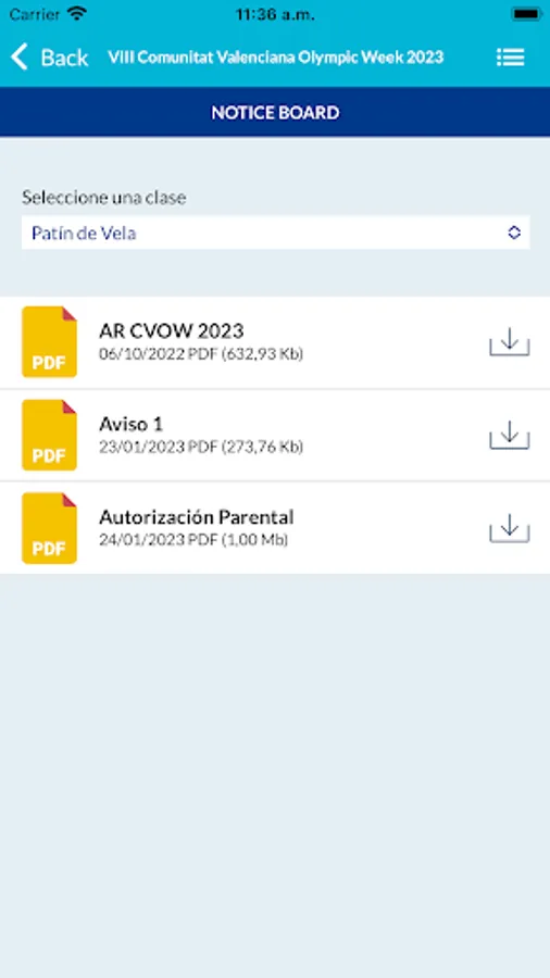 Follow the regatta with the CV Olympic Week app with live information on all the events in each class, immediate update of the results, daily images and videos of the competition, news and much more. If you want, you can receive notifications of all the relevant information about the regatta and the sailors you are following. It also includes a private area so that sailors and coaches can carry out their procedures with the organization and the regatta office during the competition.