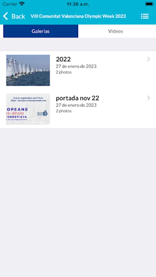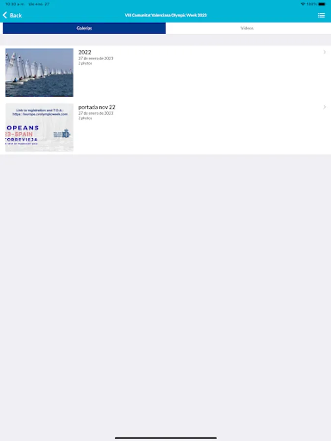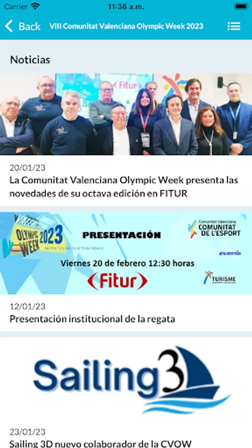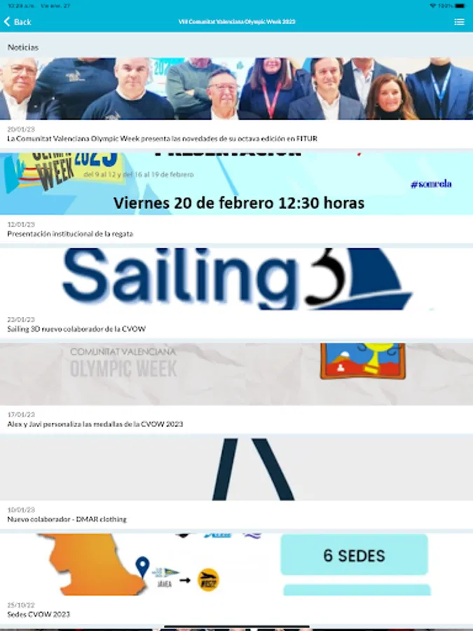 Official mobile application of the Comunitat Valenciana Olympic Week regatta.