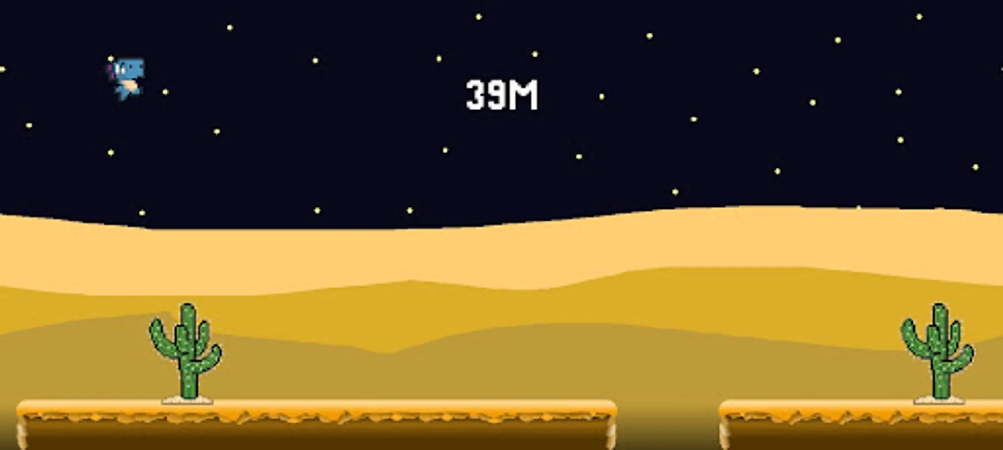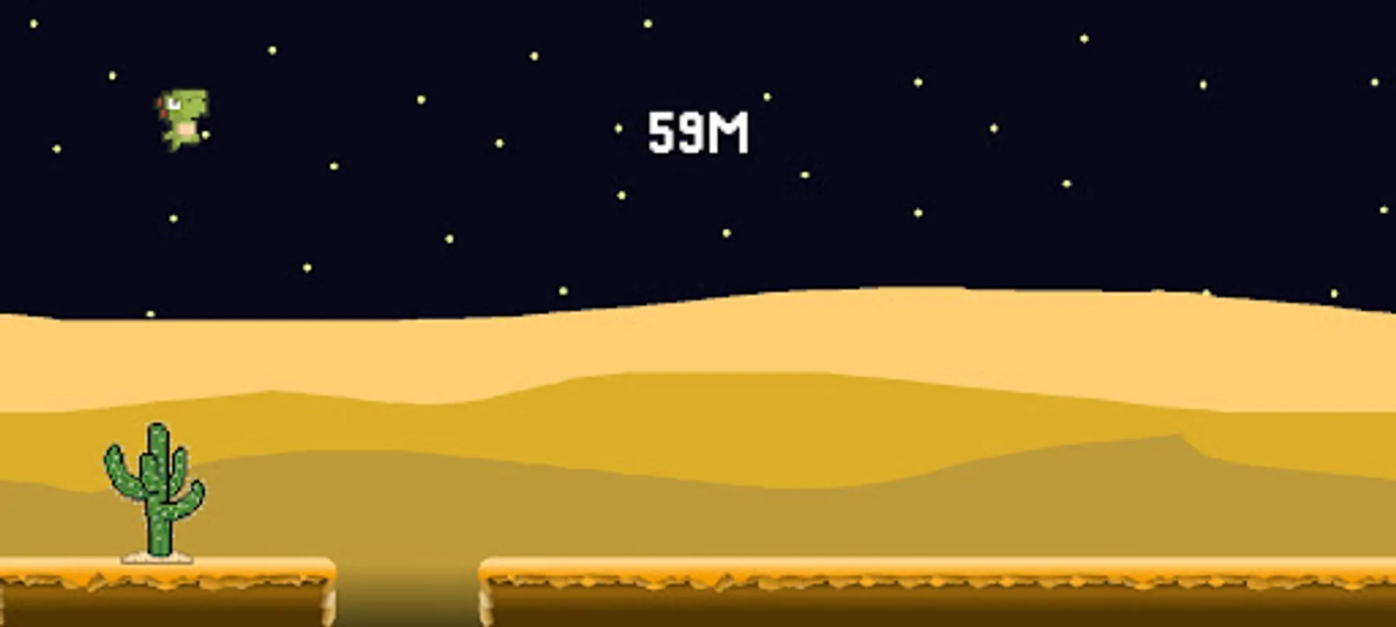 Dino Runner is a survival game in which you play as a dinosaur running through a desert. Your objective is to collect as many points as possible by jumping over obstacles such as cacti and holes.