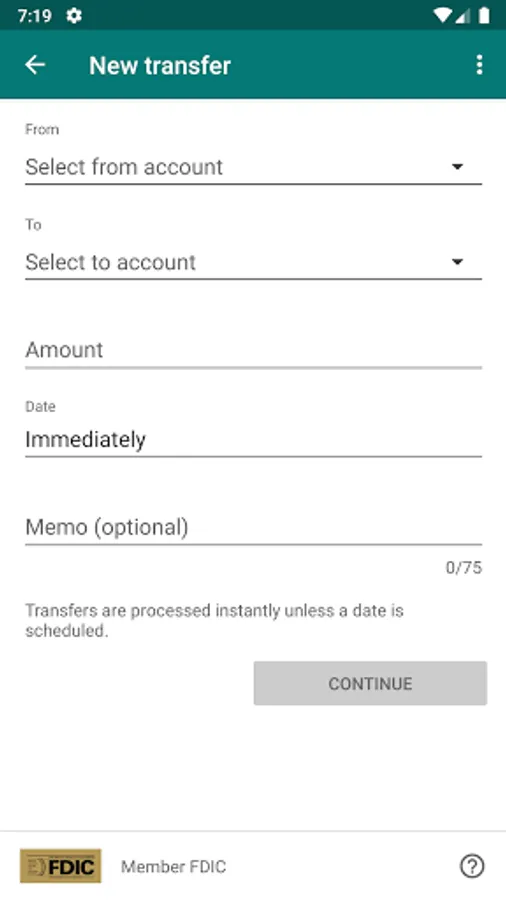 -Check your latest account balance and search recent transactions by date, amount, or check number.