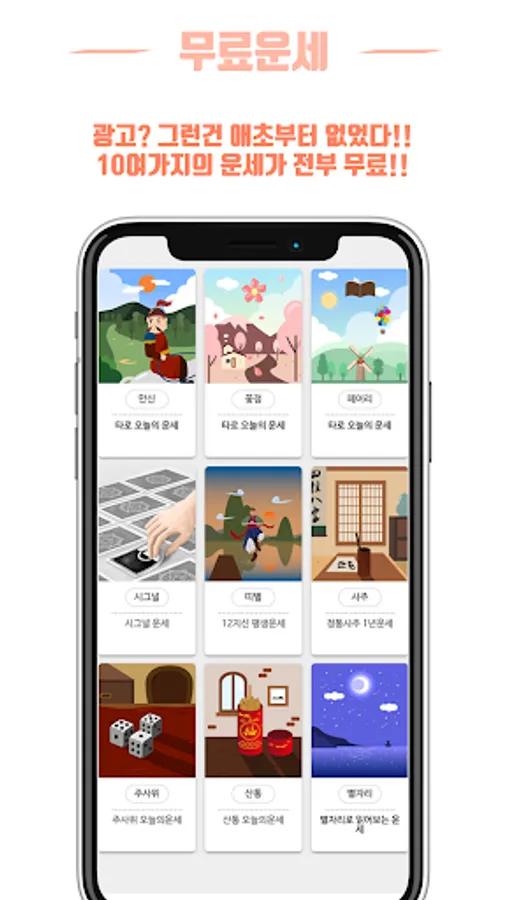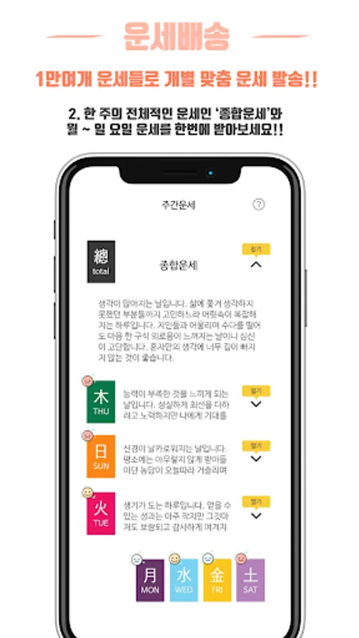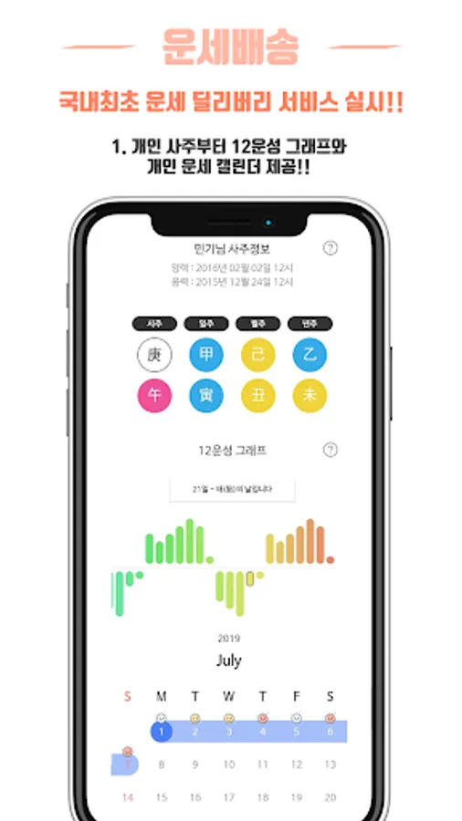 ▶ We have made efforts to provide more than 10,000 kinds of fortune-telling results directly to provide individual custom fortune-telling. It provides a personal calendar and day-to-day fortune-telling by linking five, four, and twelve fortunes to a sub-fortune so that you can select and receive your desired fortune.