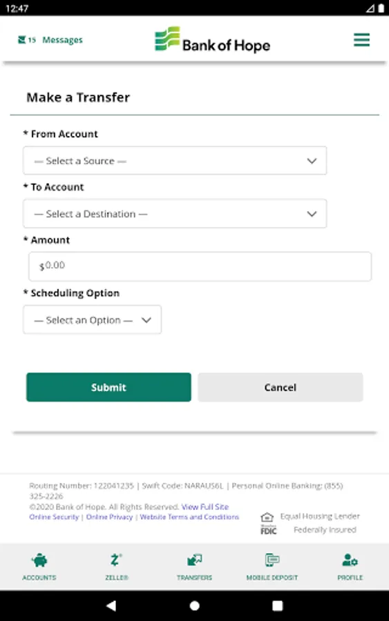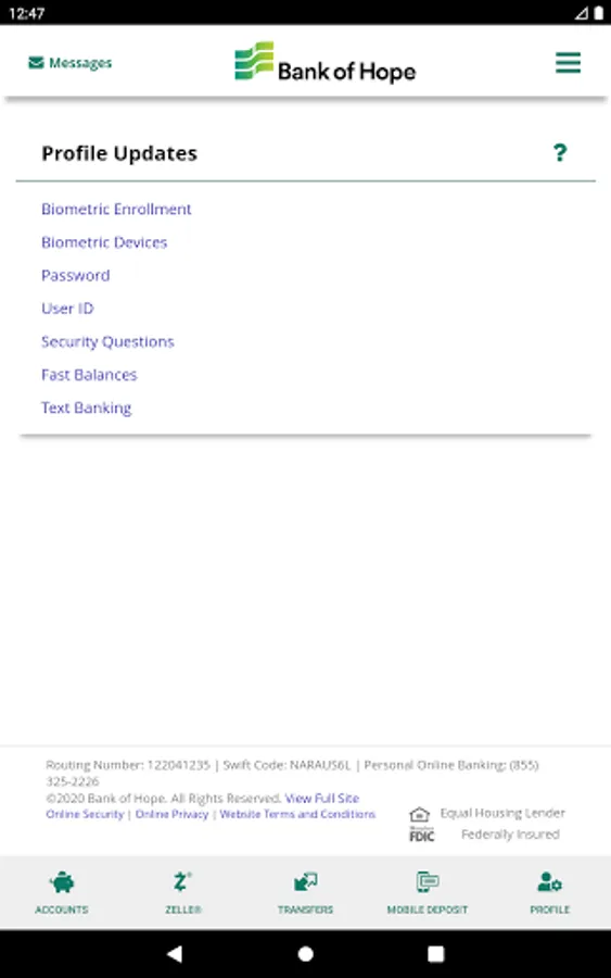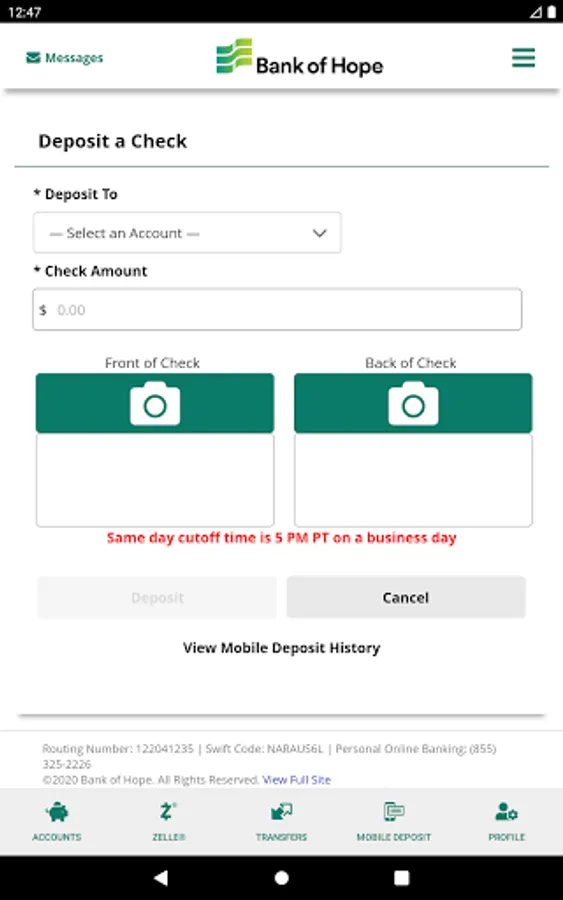 No matter where you are, you can securely manage your accounts 24/7 with Bank of Hope Mobile Banking. You can easily view your account activity, transfer money between accounts, send bill payments, make deposits, locate branches/ATMs and more.
