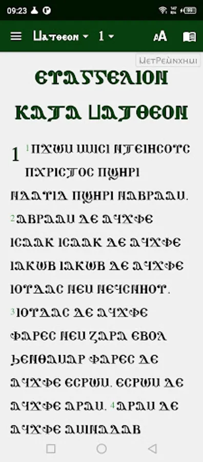 - "آية بآية" لعرض آية باللغة القبطية متبوعة بنفس الآية باللغة الإنجليزية أو العربية أو الفرنسية.