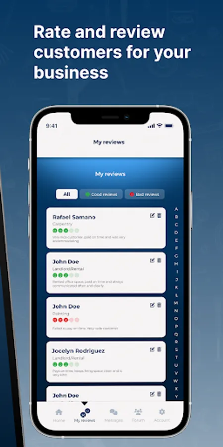 BOHAV is an app designed for businesses to rate customers and express their first-hand experience with them. For so long, large and small business owners have felt the inequality of an unjust rating system, with many customers leaving unfair and abusive reviews. False and untrue comments can negatively affect your establishment's reputation and leave you feeling discouraged. BOHAV tips the scales of justice in your favor and provides you the platform to showcase your authentic experiences with clients. Whether you are a landlord, plumber, rental manager, or any sort of business owner, leave feedback on any client you’ve dealt with. With BOHAV’s friendly 24/7 customer support, it is the perfect platform for customer reviews.