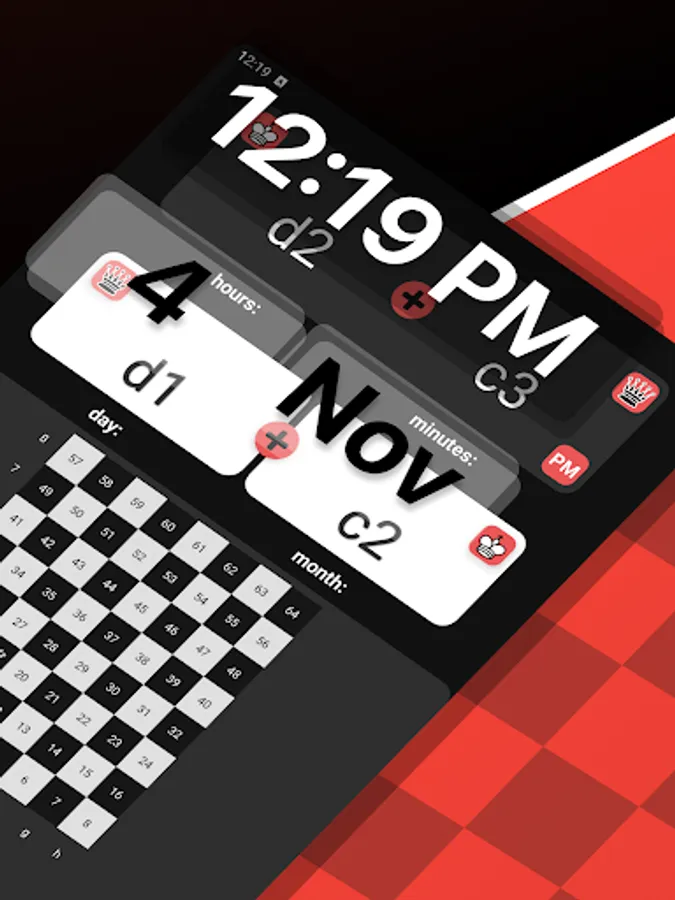 Inspire yourself on new chess battles with unique chess clock and widgets.
