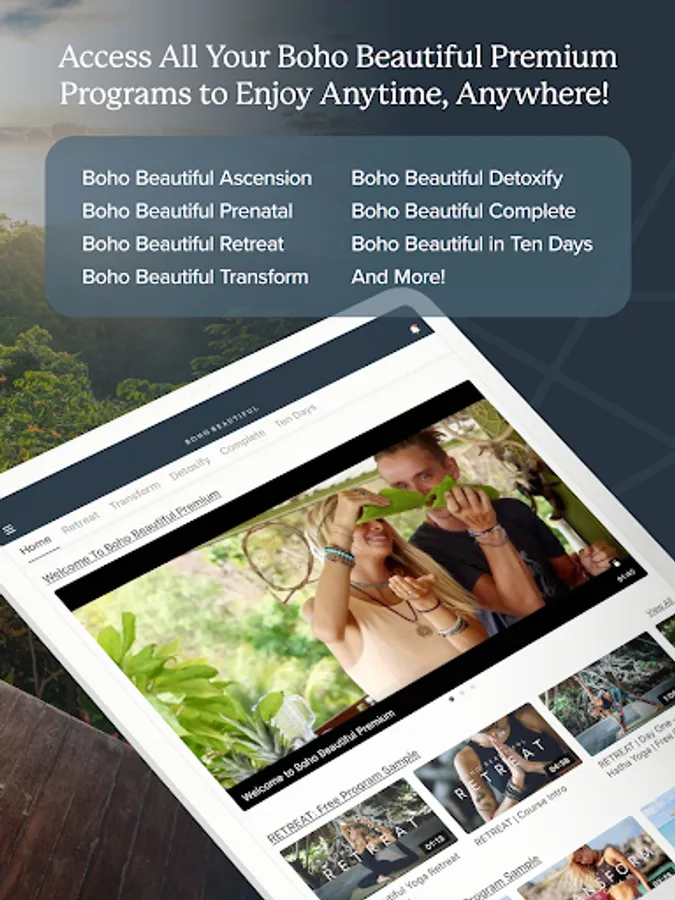 Featuring at home yoga & fitness, pilates, guided meditations, plant-based recipes and prenatal yoga & fitness - Boho Beautiful Premium is your one-stop access for streaming, downloading, & discovering a deeper connection through your health & mindfulness journey.