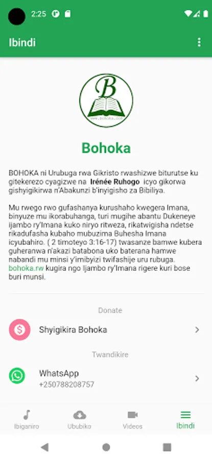 www.bohoka.com ni Urubuga rwa Gikristo rwashizwe biturutse ku gitekerezo cyagizwe na Irénée Ruhogo icyo gikorwa gishyigikirwa n’Abakunzi b’inyigisho za Bibiliya.