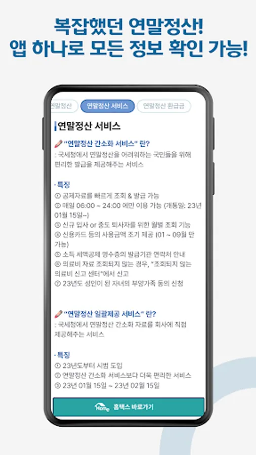 - Simplified year-end tax settlement service! A service that provides convenient issuance for people who have difficulty in year-end tax settlement at the National Tax Service!