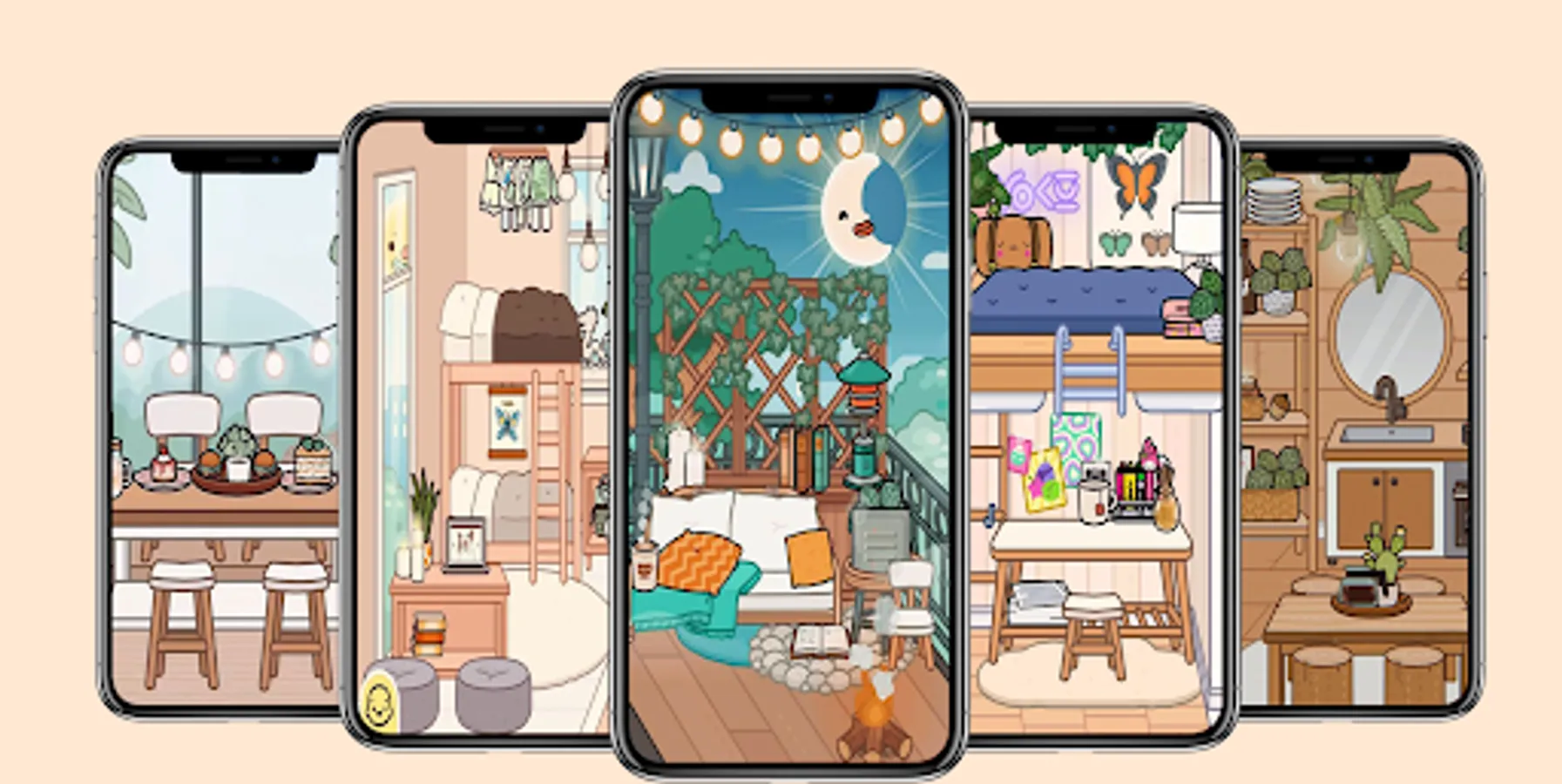 Here there is a collection of Toca Boca character images and very beautiful room designs. There are also themed images Wednesday Addams.