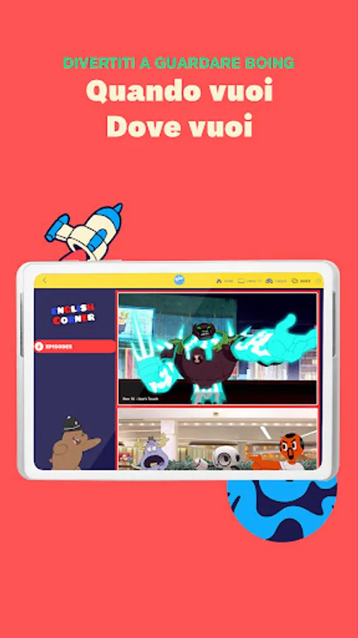 Watch Boing TV on Android tablets and smartphones: all the entertainment of the Boing TV channel at your fingertips!