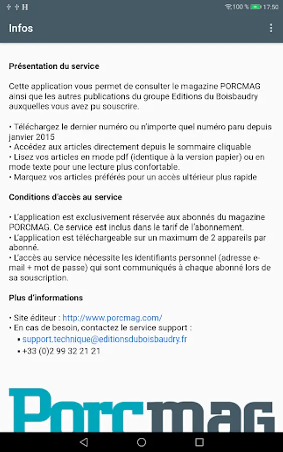The PORCMAG application is reserved for magazine subscribers and accessible by login and password required to initialize the service.