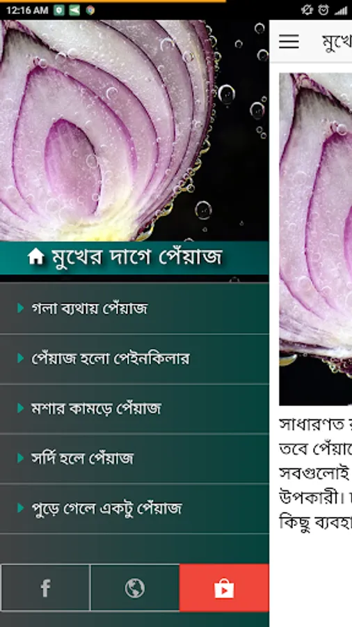 Raw onions can eat as much as girls during the period. The natural peinakilara onions, which works very well in a short time to reduce the pain. Take 15 minutes to burn a piece of onion. And the pathetic collection of rasata onion. If you drop the juice and use as ear pain. Within a short time the pain will be reduced.