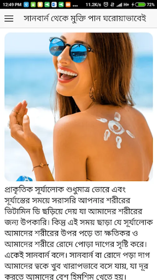 Natural sunlight only spreads vitamin D directly to your body in the morning and at sunset which is beneficial for our body. But without this time the sunlight that falls on our body is harmful and causes sunburn on our body. This is called Sunburn. Sunburn or sunburn stays on our skin very badly, which we have to eat a lot to remove.