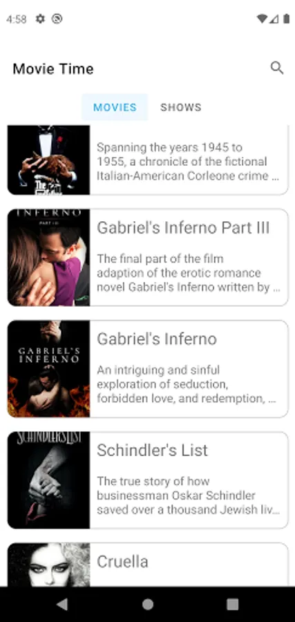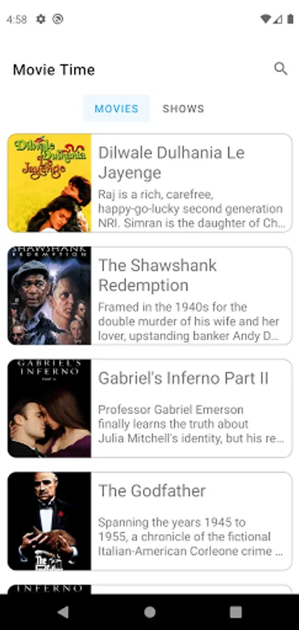 Movie Time is simple application which fetches top rated movies and TV shows from Internet. It also supports searching for movies and TV shows.