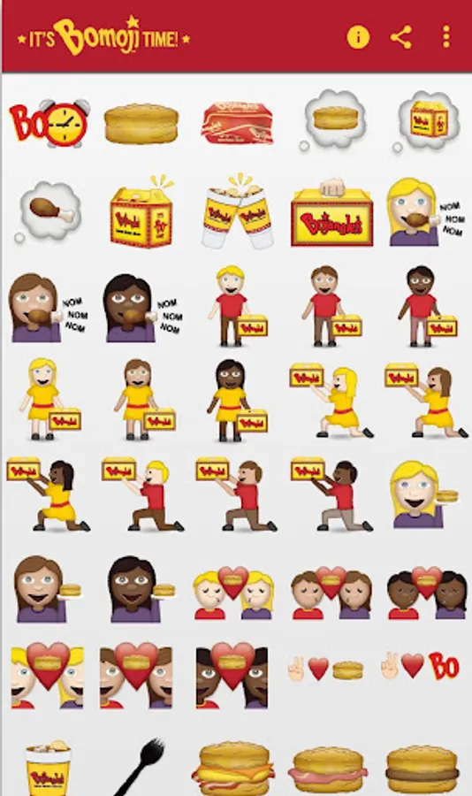 When words just aren’t enough to express your love for Bojangles’. Install the Bojangles’ emoji keyboard and send your favorite chicken, biscuits, fixin’s and tea emojis with the tap of a finger. To use, simply swipe to find that delicious emoji, tap and share!
