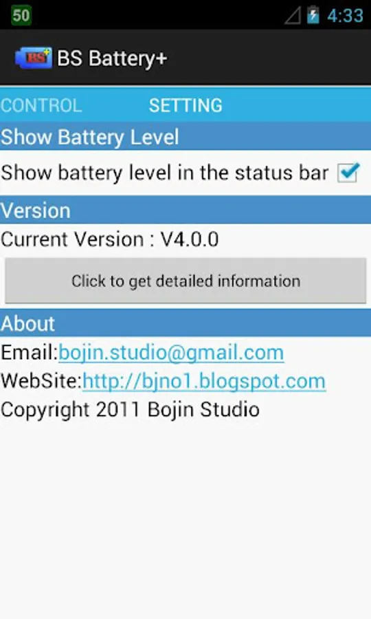 BS Battery Level:Show battery level in the Status Bar. The original battery indicator only use color to notify user what the battery level is. Green means 100%~30%, yellow means 29%~15%, and red means 14%~0%. Therefore, we offer a easy way to let user know how many percentage of battery level is.