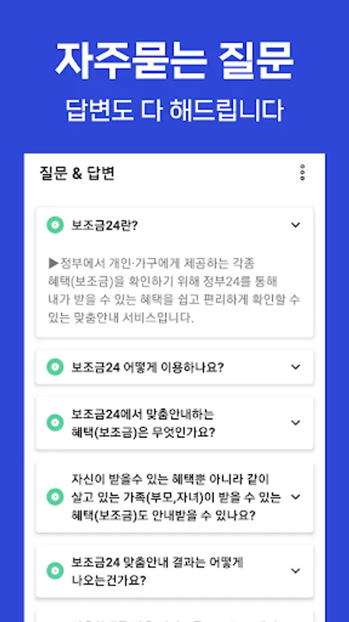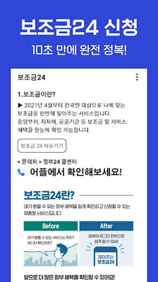Subsidy 24 is a customized information service that allows you to easily and conveniently check the welfare benefits you can receive among the various benefits provided by central ministries, local governments, public institutions, offices of education, etc.