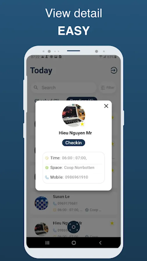The player can provide the QR code in their booking at the Check-in counter. The Staff will scan that QR code to check the valid player.