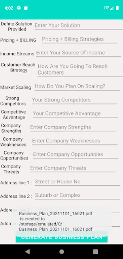 Business Plan Generator gives you a business plan template and prints in out in PDF for your convenience.