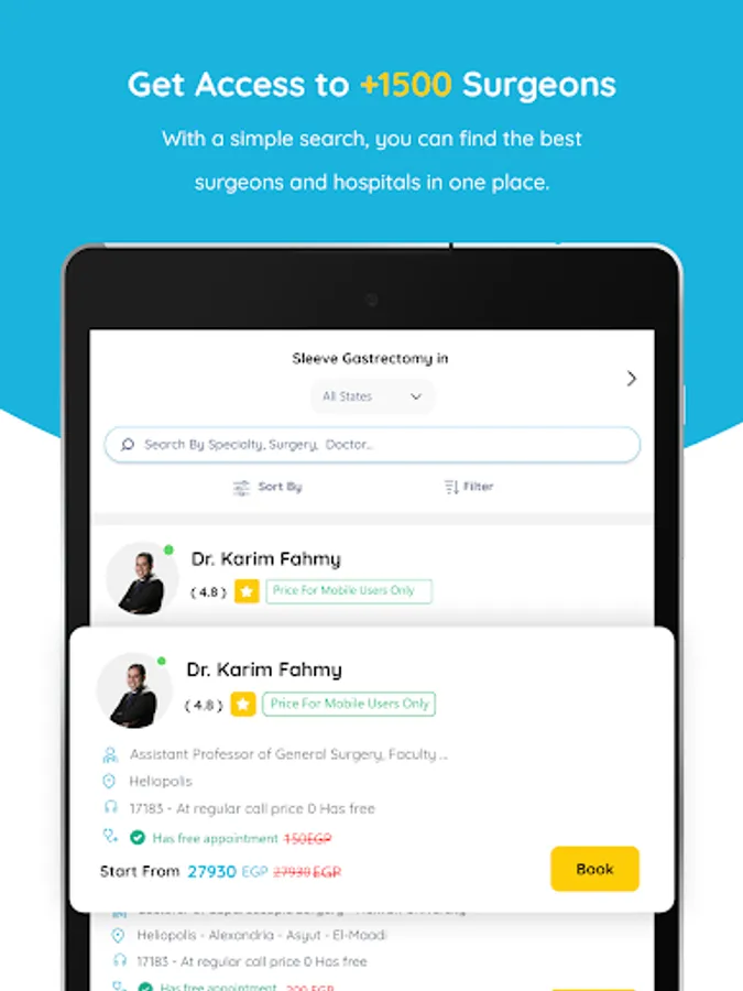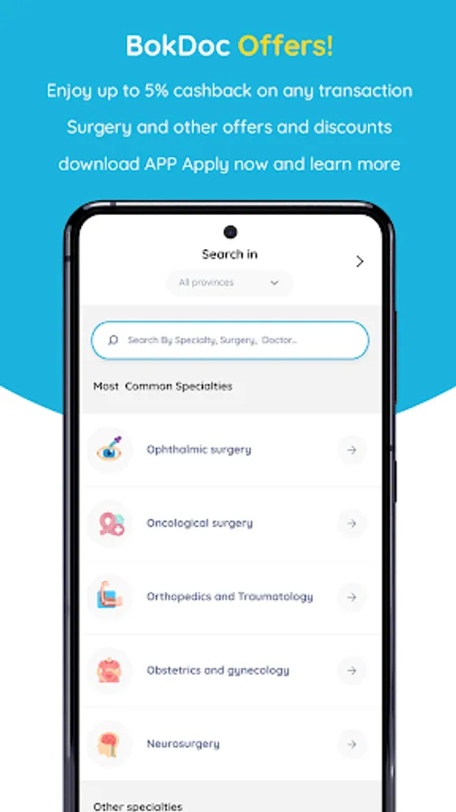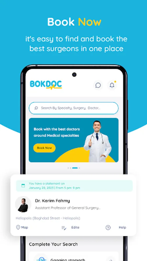 BokDoc is the 1st MARKETPLACE specialized in SURGERIES & MEDICAL PROCEDURES in MENA region, includes more than 37 different Medical specialties, 1500 DRs & 75 Hospitals, More than 3000 surgeries & procedures.
