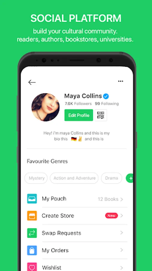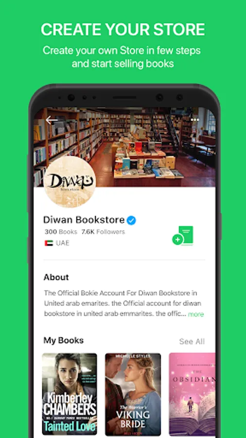 * Create your bookstore and start selling your books directly from your mobile device.