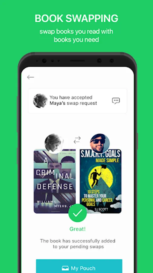 * Add books to your Pouch and search for available books to swap