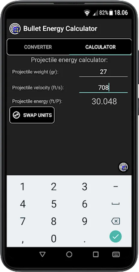 - [grain (gr), foot per second (ft/s)] -> foot -pound (ft/P)