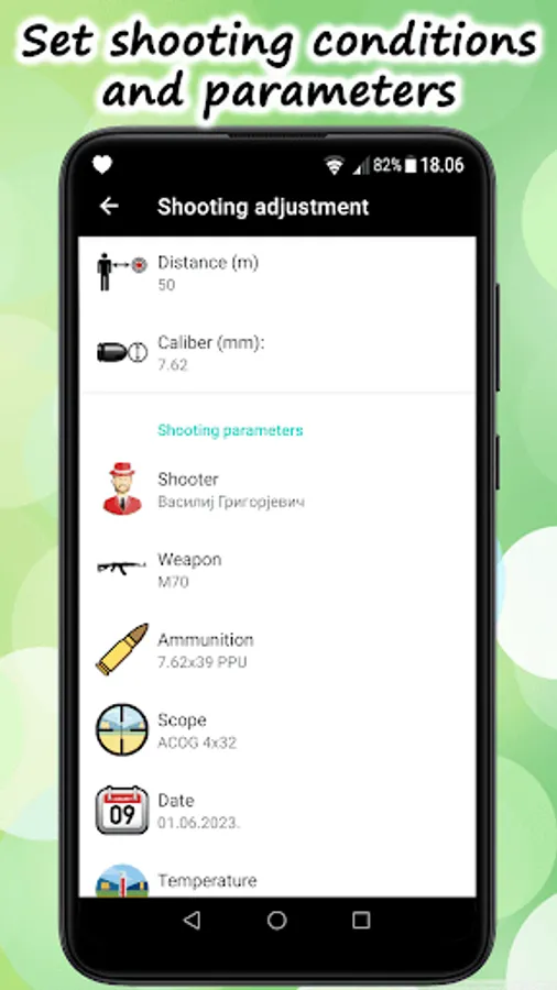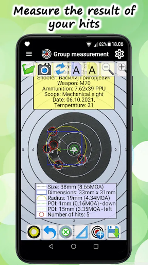 The main purpose of the application is to measure groups of hits, correct your shooting, save and share the results. With the app, you can easily track the progress of results and calibrate optical and other sights.