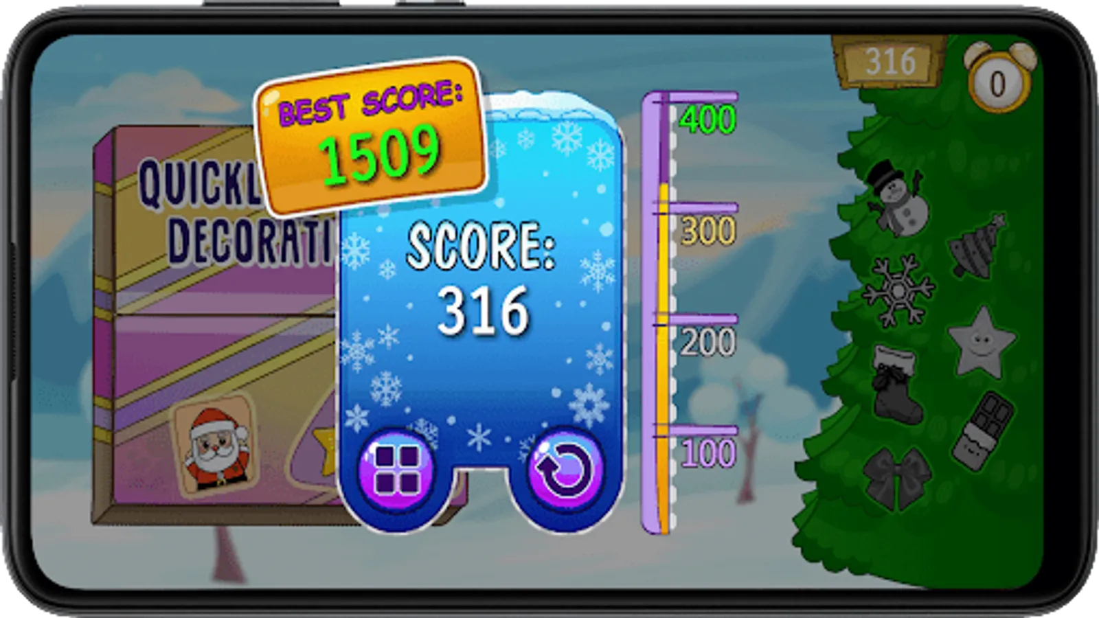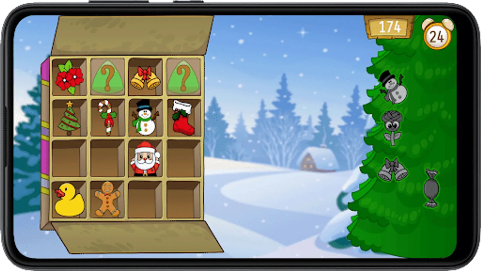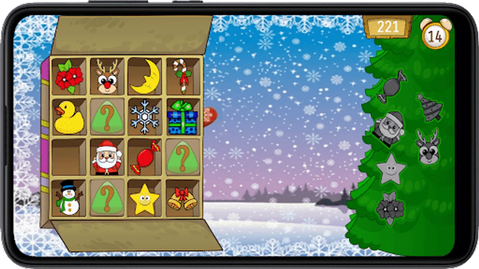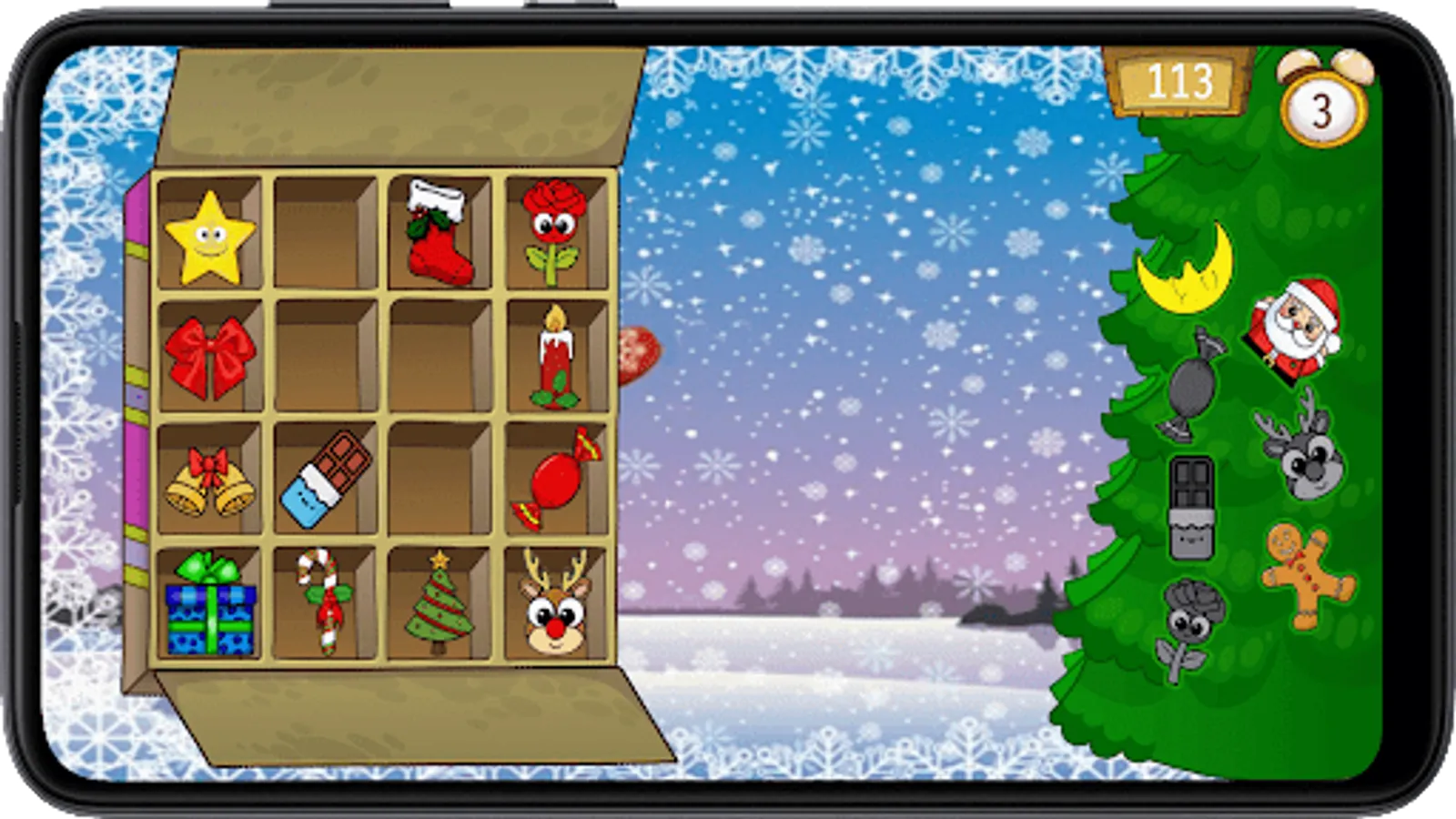 In the box with decorations you will find variously arranged decorations, which you need to place correctly on the tree. You can have a maximum of 16 decorations in the box, while you should place a maximum of 7 on the tree.
