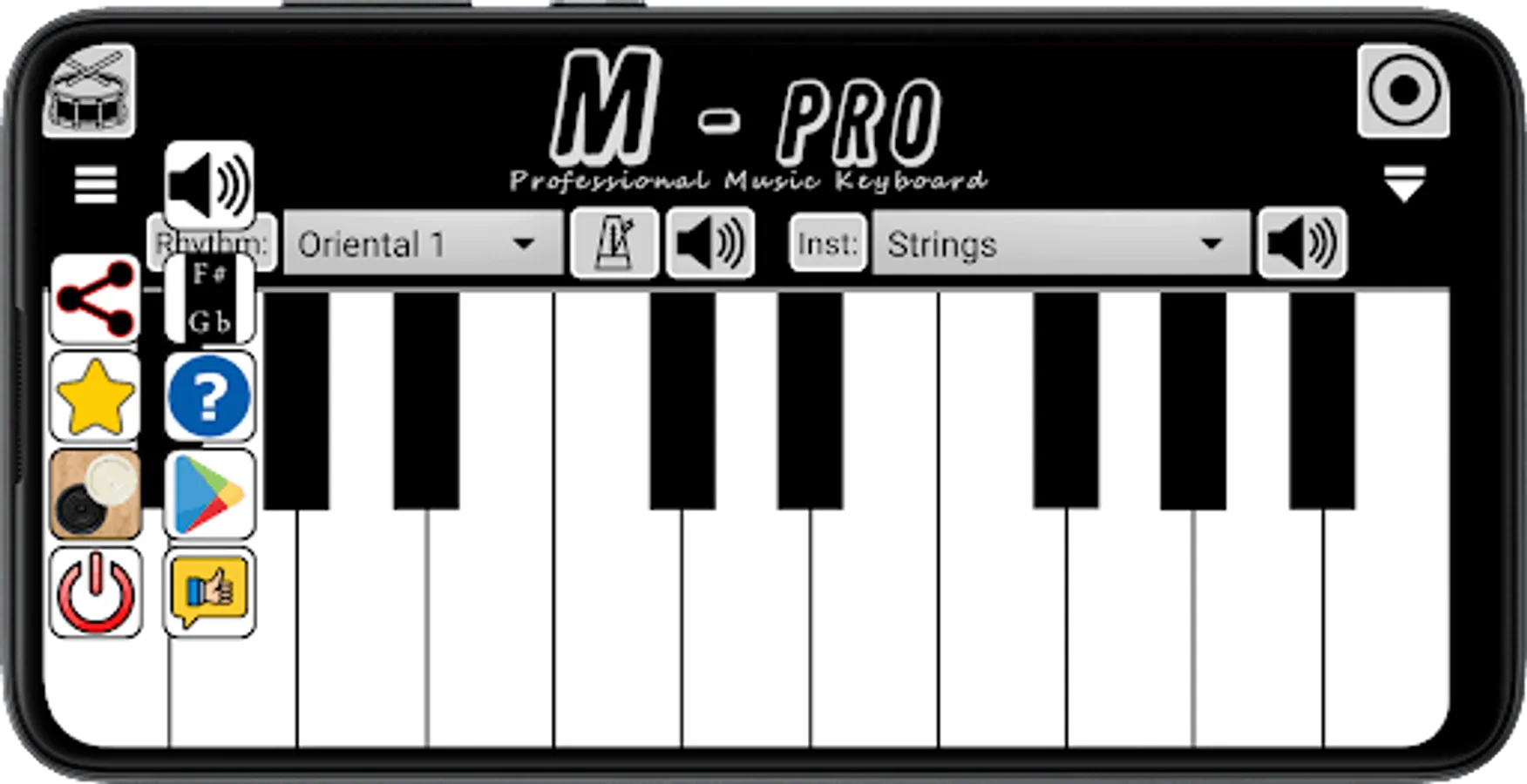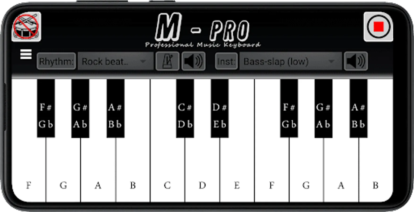 Play and compose music with the M-pro. Real sounds of rhythms and instruments.
