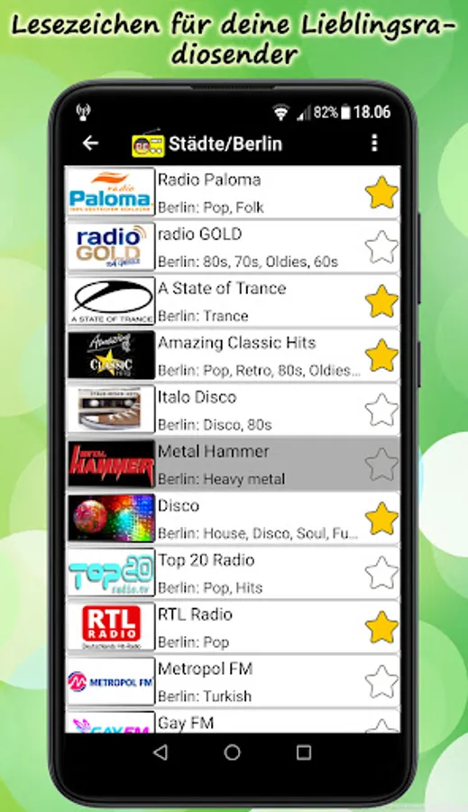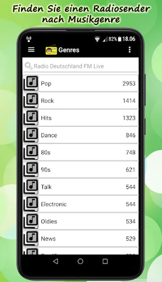 Radio stations are also grouped by music genre. Select the desired music genre.
